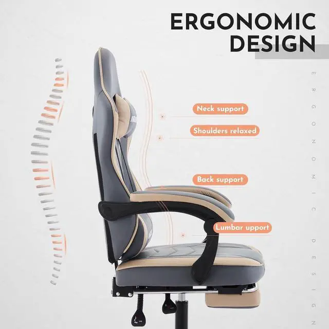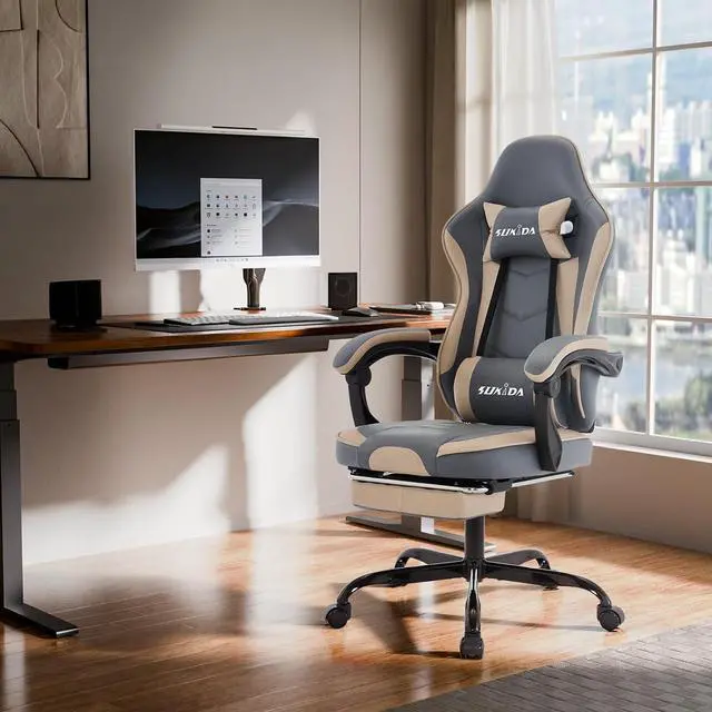 Function-rich The lumbar pillow is equipped with a USB vibration device, which can be connected to any USB power supply device, such as a computer, game console or mobile phone charger, etc., to easily supply power and realize waist vibration. Telescoping footrest allows you to sit with your legs outstretched. If you use it with the reclining backrest, you can relax as if you were lying in a bed. When not in use, the footrest easily stows under the chair to save space. Resin-made silent casters, move smoothly and without noise.
