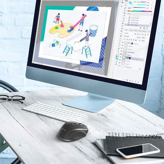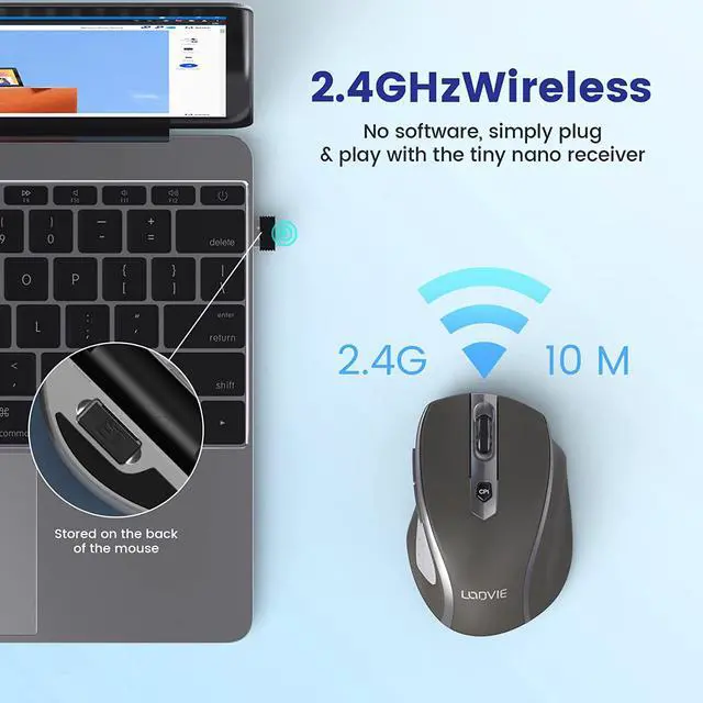 Wireless Convenient & Freedom - This wireless mouse connects with the 2.4G wireless technology via a USB Nano receiver(stored on the back of the mouse, besides the battery). Transmission distance can up to 10m/33ft. Just plug and play, no drivers needed.
