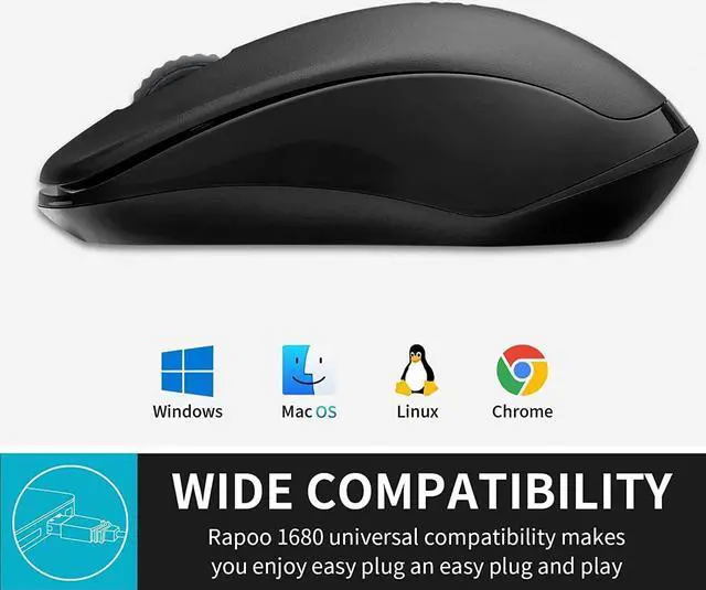 Silent DesignThe Rapoo 1680 wireless mouse is a silent mouse. When you are studying in the library, or when your child or husband is asleep, the silent mouse will bring you a peaceful environment and a comfortable experience. Effectively reduce the click sound by 90%, the data comes from the formal laboratory test report.