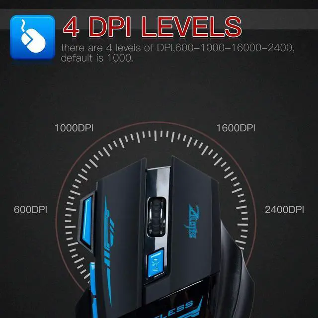 FOUR DPI LEVELS: 600-1000-1600-2400. DPI button for you to adjust the suitable speed per your needs. The mice will remember your DPI choice, won't set again next time. Polling rate up to 250-500Hz, achieving zero latency and won't frame skipping, quality!