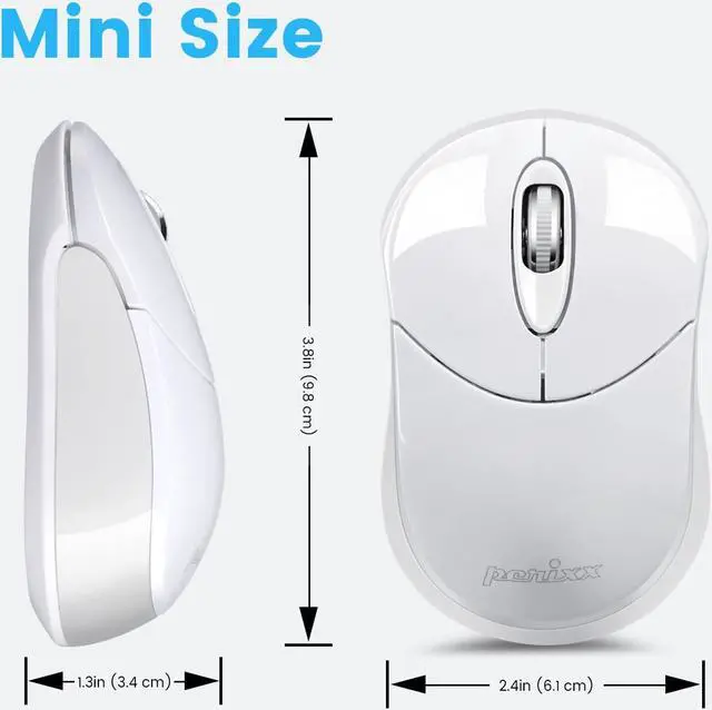 Perixx PERIMICE-802W Wireless Bluetooth Mouse - Portable Design for Windows, iOS, and Android Tablet - White