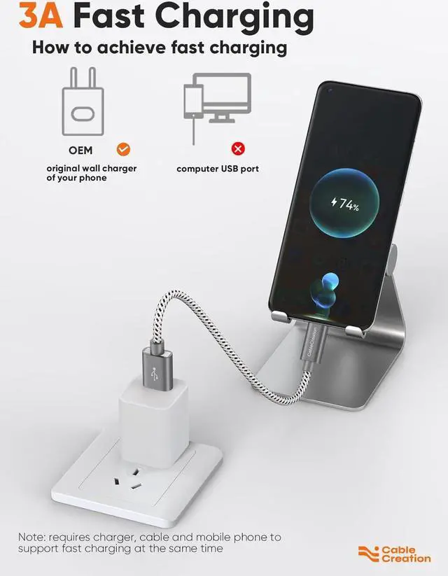 3A Fast Charging & Data Sync: Built in with 56K ohm resistor to protect your devices from damage. Supports quick charge (QC) and USB 2.0 data speed up to 480Mbps. The prerequisite of supporting FAST CHARGING is that the device must support fast charging protocol, and the power supply device and the charged device must support the same fast charging protocol. (NOT recommend to connect it with hard drives, in this case, you