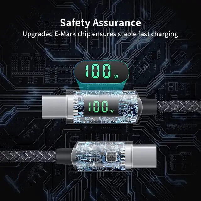 SooPii 100W USB C Cable, 6.6FT Nylon Braided USB C to USB C Cable, Fast Charging Type-C Cable with LED Display for lPad Mini/Air/Pro, MacBook Pro, Samsung Galaxy S22/S10, Pixel, LG