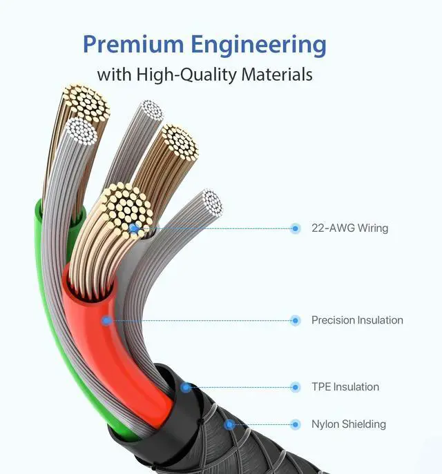 Ultimate Durability Based on 36, 000+ bends strict tests, with special zinc alloy design and wearing rugged nylon braided exterior, SooPii Type-C Charging cable designed for longer service life and will never rupture.