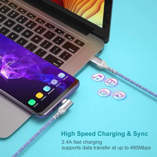 Degree Angle Design Plug: With an innovative 90 degrees L design, Pofesun USB C cable is designed to reduce wear and tear on the cable and on your Type-C smartphones especially ideal for limited space. It's more convenient and more comfortable for playing games, watching videos, reading e-books when you lie on the couch or bed while charging