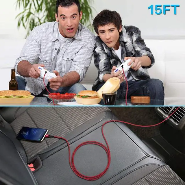 2Pack 15FT USB Type C Cable--With extra-long 15FT length, you can lie on the couch or sofa and use your devices while you are charging at the same time. And you can use freely in your bedroom, office and even in the backseat of your car playing your PS5 Controller