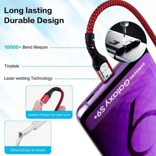 Fast Charging and Sync--iSeekerkit USB Type C Cable transfer speed up to 480Mbps, 3A Fast Charge. Data Transfer and Power Charging 2 in 1 USB-C Cable. ------[NOTE]-Samsung Galaxy Note 10/Note 10 Plus Support fast charging, but require a USB-A QC 2.0 /QC 3.0 /AFC charger.