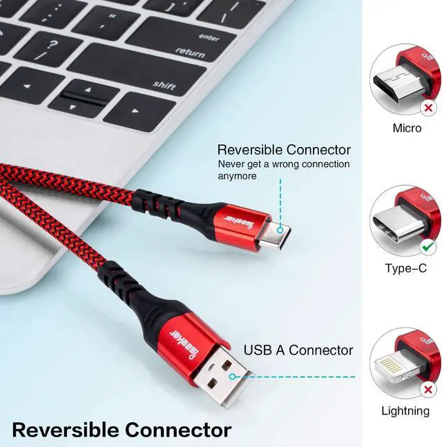 Up-graded Durable Materials--Strong fiber, the most flexible, powerful and durable materials, making it more durable. Special Strain Relief design can bear 10000+ bending test. Premium Aluminum housing makes the cable more durable and tangle free.