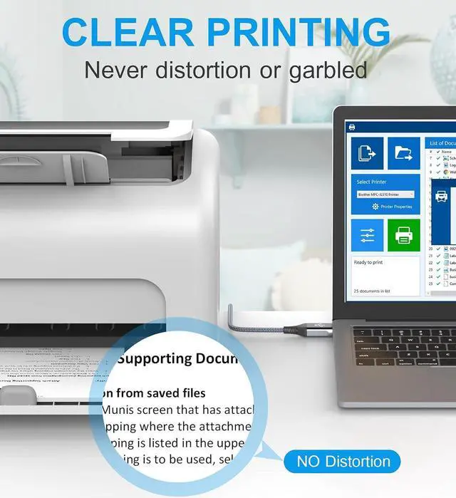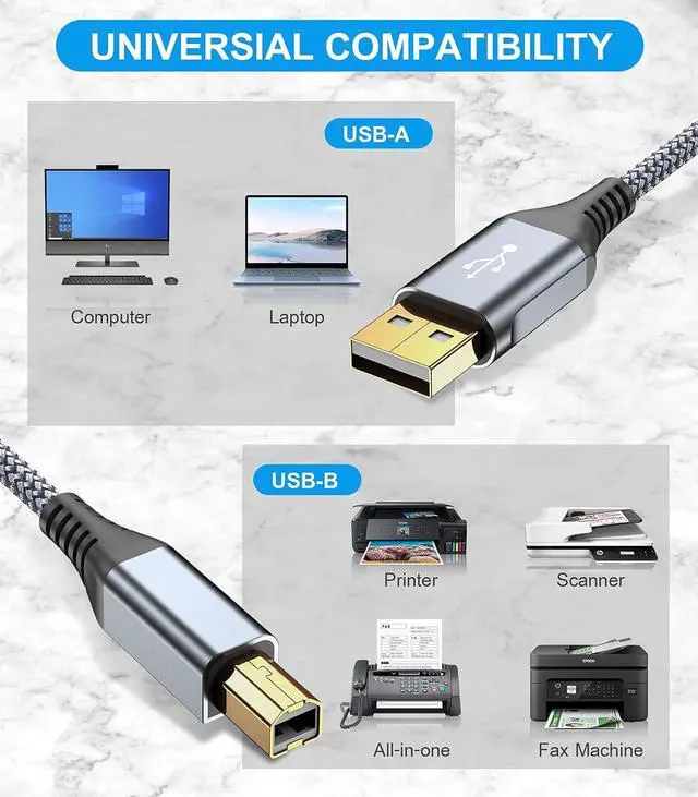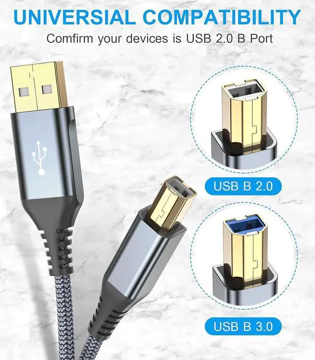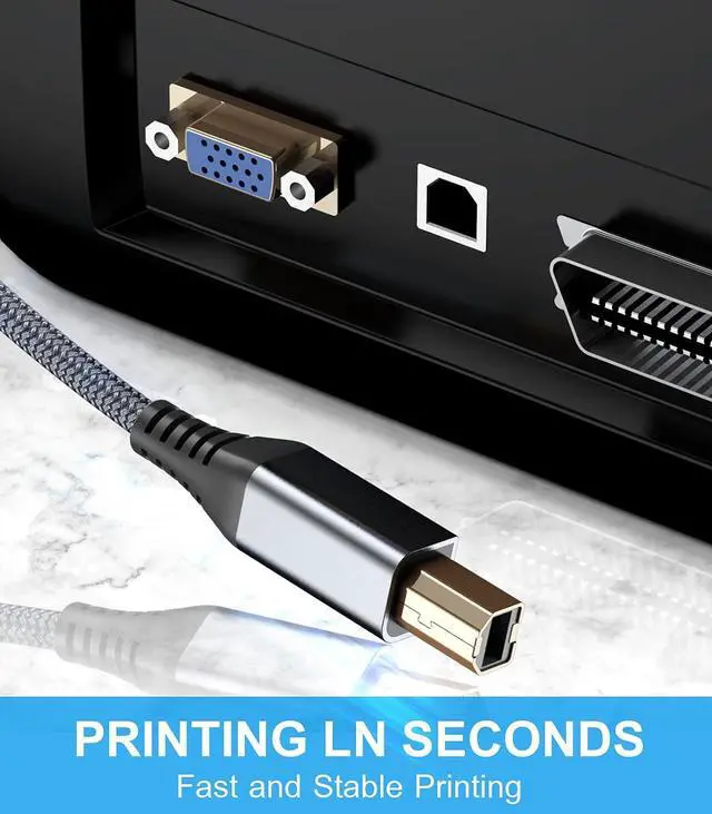 [Nylon Tangle-free Design]: Tangle-free Nylon Braided Design, this USB 2.0 Printer Cord is far more dependable than others in its price range. Premium nylon braided cable adds additional durability and tangle free.