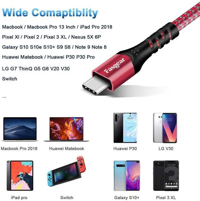 10Gbps Data TransferFasgear USB C to USB C Cable supports data transfer rates up to 10Gbps, 20x faster than USB 2.0 Type C cable, only a few seconds with an HD movie. And large files will be finished in seconds.