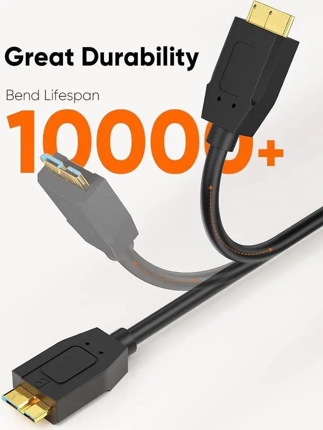 10Gbps Super Speed: This USB 3.1 Type C to Micro B cable supports ultra-fast data transfer rate up to 10Gbps for transferring files from Solide State Drives (SSD) (Please