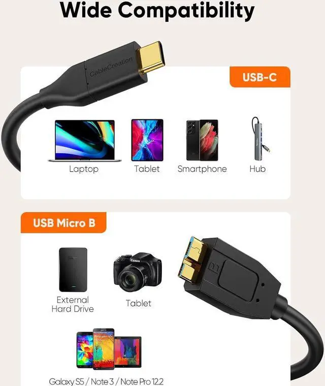 Short External Hard Drive Cable: This USB C to hard drive cable is easy to carry, contact efficiency. CableCreation offers two years warranty for all cables, backed by friendly customer service