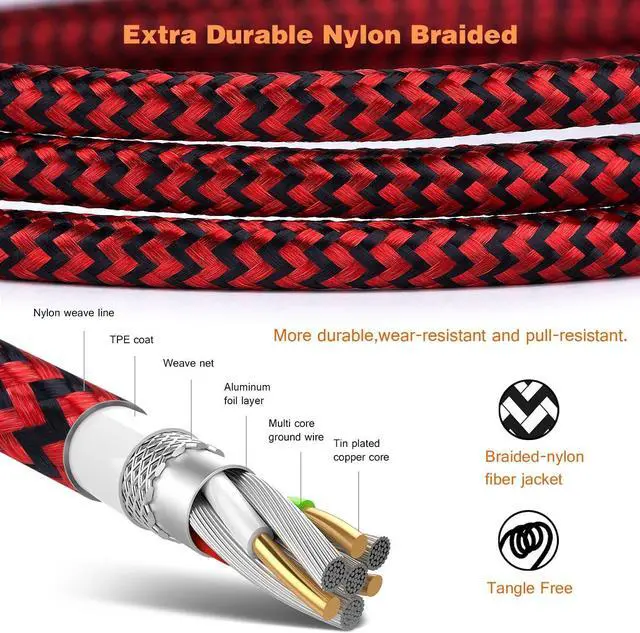 Tangle-free Nylon Braided USB Cable with aluminum connector has a 8000+ bending lifespan, much stronger than the normal cables.