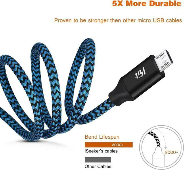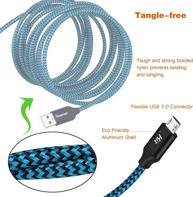 Comes with 2-Pack of 15Ft durable & flexible micro usb cable with user-friendly customer service. We will try our best to resolve your issue if you have any questions.
