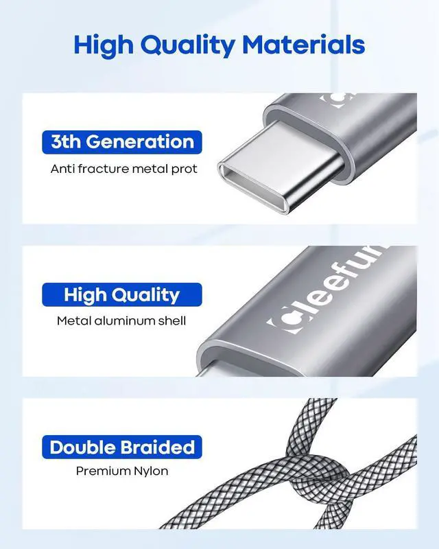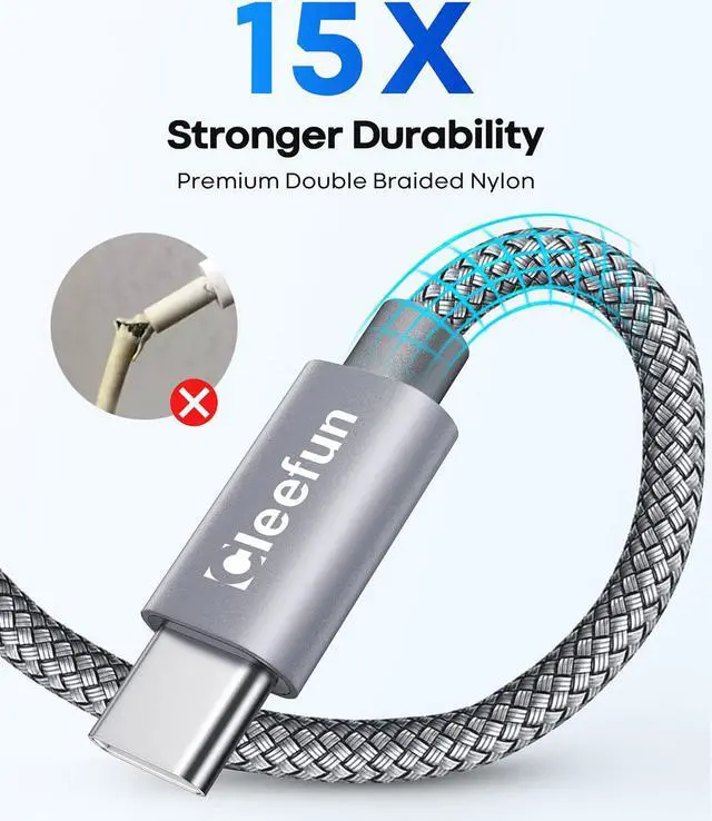 Enhanced 15X Durability CLEEFUN improved usb-c cable construction techniques and materials make a cable that can lasts 15× longer.