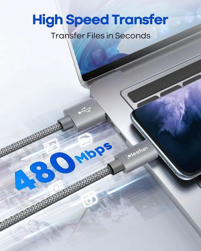 Fast Charging & Sync CLEEFUN usb c cable supports safe high-speed charging at 3A Maximum and data transfer speeds up to 40~60MB/S (480Mbps).