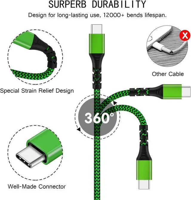 Tangle-Free Nylon BraidedDouble-layer nylon-braided fiber jacket and sturdy construction promise this usb c cable years of durability. Stylish color adds additional appealing.