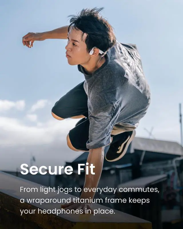 Secure Fit - From light jogs to everyday commutes, a wraparound titanium frame keeps your bone conduction headphones in place during a range of low impact activities