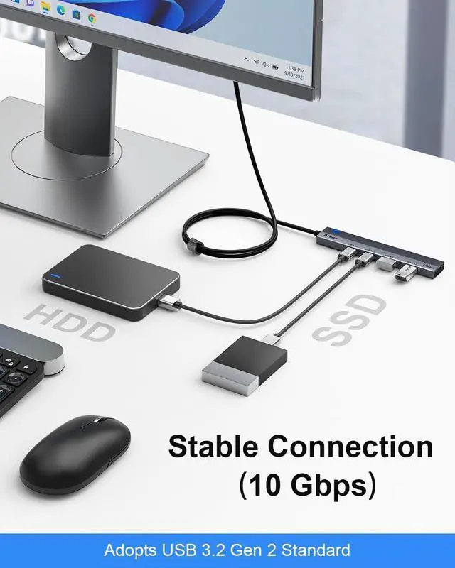 Widely Compatibility Aceele USB 3.2 Gen 2 Hub is compatible with Windows, Mac OS, and Android systems. Plug and play, no driver required. Small and light, easy to carry.