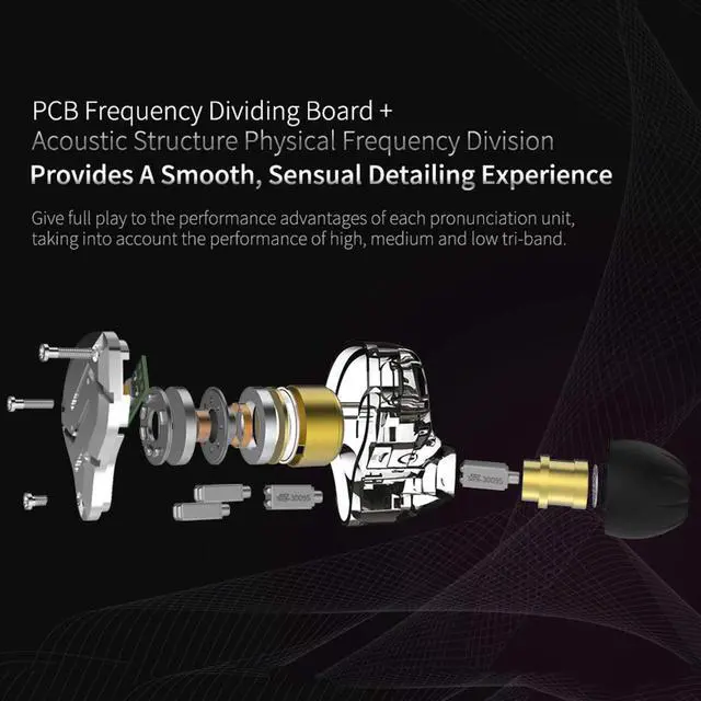 : The PCB board is added to give full play of all the drivers, displaying a smooth, sensible, detailed music experience. The ZS10 Pro overall has dynamic low frequency and bright resolution. It fully reflects the cohesion of balanced armatures