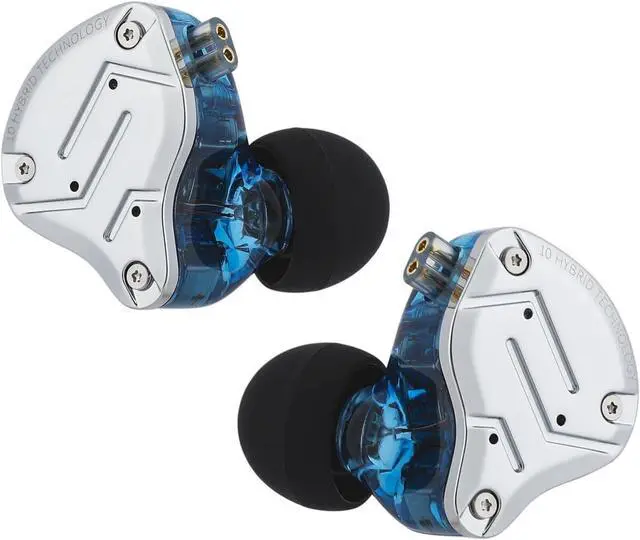 Linsoul KZ ZS10 Pro, 4BA+1DD 5 Driver in Ear Monitor, HiFi Wired Earbuds, Gaming Earbuds, Hybrid IEM Earphones with Stainless Steel Faceplate, Recessed 2 Pin Detachable Cable (with Mic, Blue)