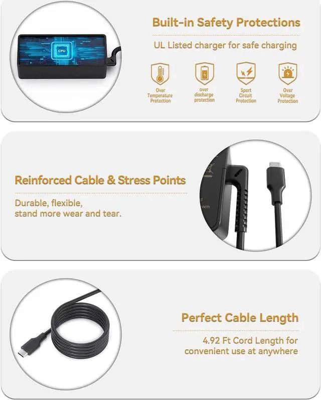 Type-C port output up to 45W Power Delivery enables fast and efficient charging of compatible devices. Multi-Protection; Over Voltage Protection; Short Circuit Protection; CE-/FCC-/RoHS-Certified for safety