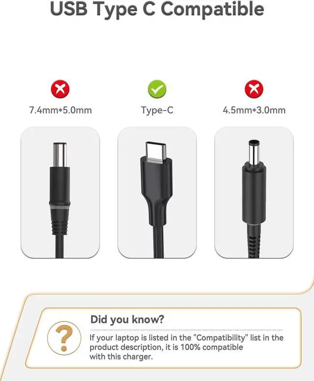 TYPE /USB C Charger for HP Chromebook X360 14-CA000 11-AE000 14-ca061dx; HP Spectre X2 X360; Elite X2, Pavilion X2, Pro