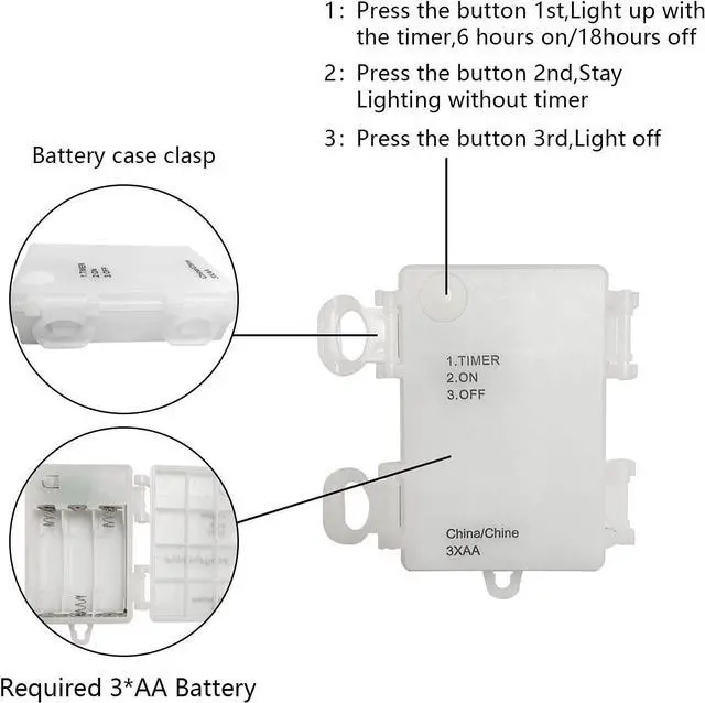 Powered 3AA batteries (battery not included) with low voltage, no overheat after many hours of usage, and safe to touch, 30lights warm white micro LEDs bulb are sparkling glowing.