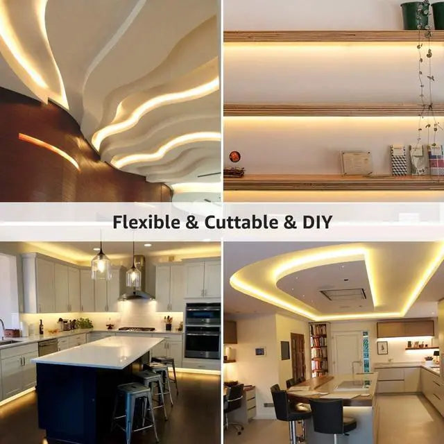 Flexible operations & Easy Installation: This home LED strip lights provides self-adhesive backing, which make it safe and convenient. The led rope lights provides slim, compact and flexible PCB strip. Mount end-to-end for bendable or angled patterns, or in continuous rows.