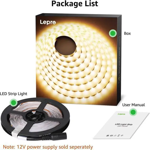 Tips: A power adapter is required but not included in this warm white led strip package. As an accessory supplement, you can use it with our other warm white led lights series product, search 'B00MHLIELM' or 'B088YP35JW' on. ca if you need.