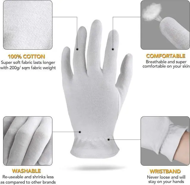EXPERIENCE A LUXURIOUS SPA & BEAUTY TREATMENT - Perfect for indulging in a pampering self-care ritual, our 100% cotton gloves elevate your skincare routine. Whether for nighttime skincare, cosmetic applications, or manicure treatments, our soft and breathable gloves promote a sense of spa-like relaxation anytime you need it. With a fabric weight of 200g/sqm, you'll feel a big difference compared to other brands.