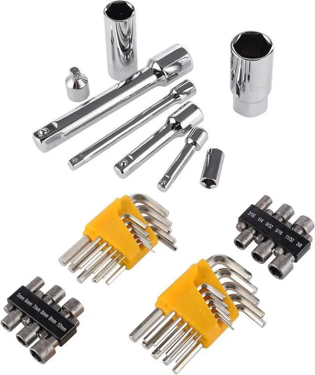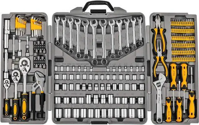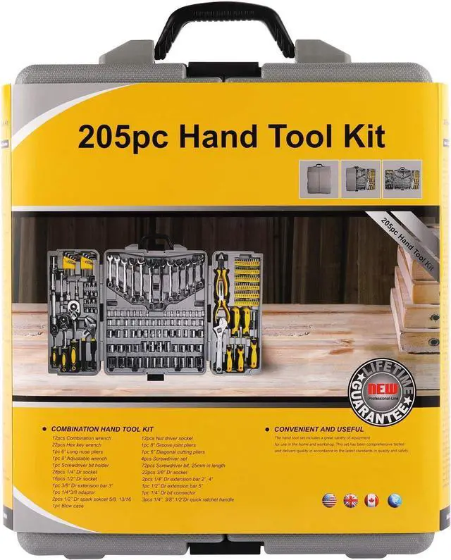 205-Piece tool set combines most popular sockets wrenches and hex keys set etc hand tool for easy accessibility. Also includes the most common screwdriver bits pliers set.