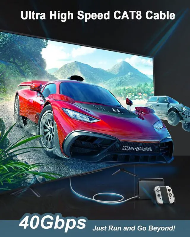 Ultra Internet Speed: HUGIN latest cat 8 ethernet cable supports 40Gbps high speed and 2000MHz bandwidth. It is 4 times faster than cat7 and 40 times faster than cat6. The lan cable features upgraded technology to perfectly match your latest gaming consoles, X box/PS5/PS4/Steam Deck/SNES/Switches. Enjoy a smooth, immersive gaming experience.