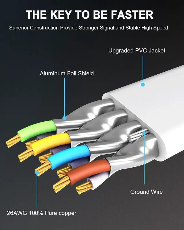 2X Durable: This network cable is made of 100% oxygen-free copper conductor with excellent electrical conductivity and ductility, combined with S/FTP shielding, effectively preventing EMI/RFI interference and guaranteeing high-quality transmission over long distances. The PVC jacket is waterproof and UV resistant, which has stronger anti-aging performance and is suitable for indoor and outdoor.