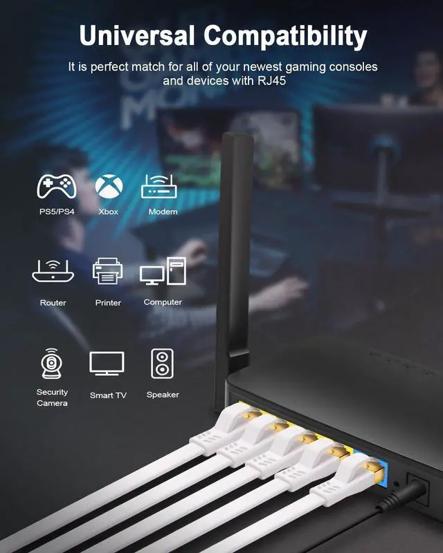 Universal Compatibility: All lan cables could be backward compatible with CAT5, CAT5e, CAT6, CAT 6a and CAT 7. It works perfectly with routers, ADSL, adapters, modems, networked printers, Netgear, NAS, VoIP phones, laptops, couplers, hubs and other devices with RJ45 connectors. It's a great choice for home, business office and professional applications.