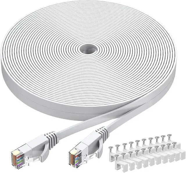 White Cat 6 ethernet cable 100 ft comes with 40 cables mounting clips (more or less). BUSOHE has a stricter production process and better craftsmanship to produce better products