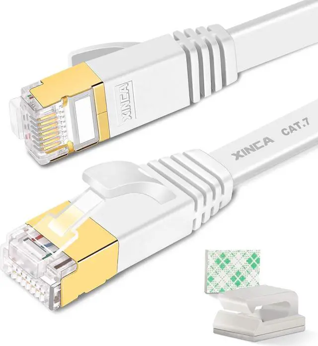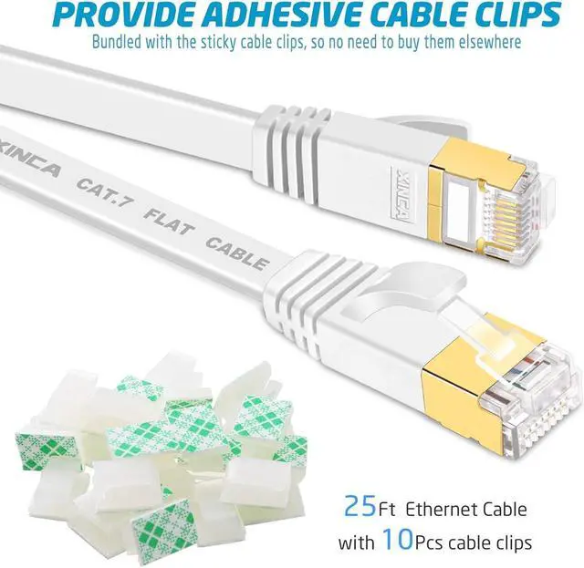 Cat 7 Flat Ethernet Cable 25ft White,High Speed 10GB Shielded (STP) LAN Internet Network Cable-XINCA Ethernet Patch Computer Cable with Snagless Rj45 Connectors - 25 feet White (7.6 Meters)