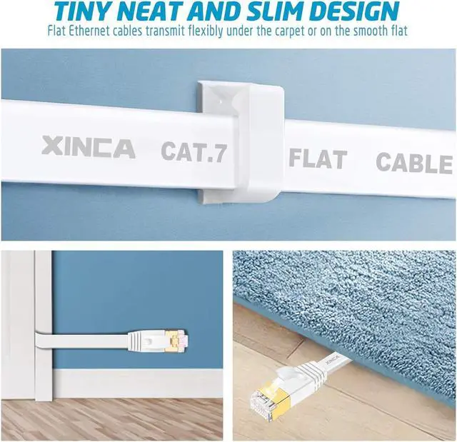 UNIQUE FLATNESS: Cat7 flat ethernet cable transmits flexibly under the carpet or on the smooth flat, besides, a cable clip with high compactness will be presented to you in the package, combining the Cat7 flat cable with the cable clip to stick the Ethernet cable to the wall, which will protect the wall from being damaged.