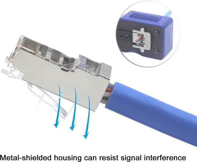Metal-shielded ShellShielded RJ45 connectors apply oxygen-free copper to reduce signal loss and resist interference. 50 gold-plated pins can prevent internal metal oxidation and guarantee stable transmission network environment for you.