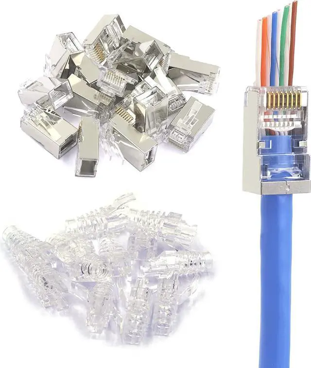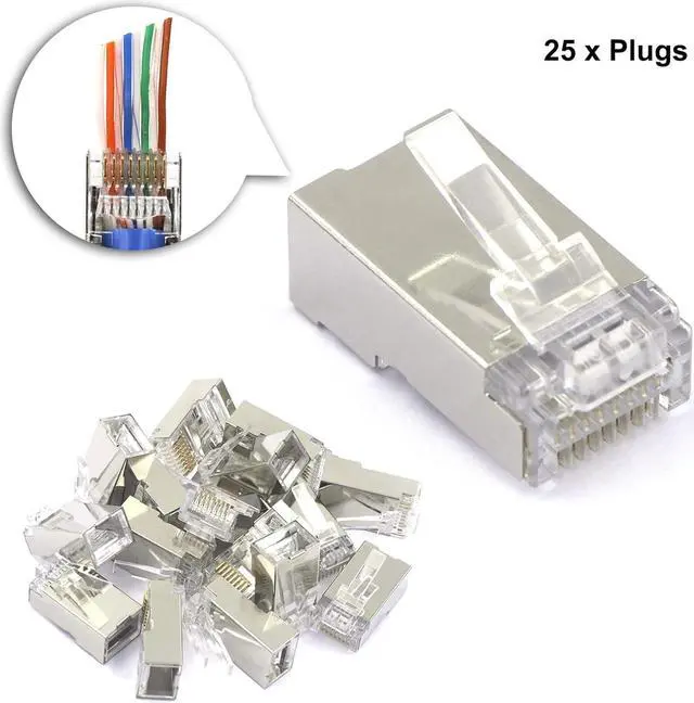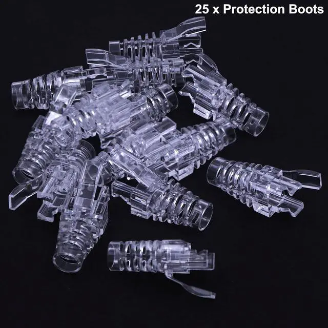 What Will You Get25 x Shielded RJ45 CAT6 Pass Throug Plugs + 25 x Strain Relief Boots; 18 months warranty for quality problem.