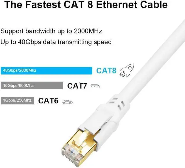 UNIVERSAL COMPATIBILITY: Meet all proposed CAT 8 cable requirements and compatible with CAT7, CAT6, CAT6a, CAT5e, CAT5 cable standards. Designed to be used in server applications, cloud computing, data centers, and high performance computer networking application. Perfect to connect Routers, Switches, Modems, PlayStations, Network Adapters, Hubs, Xbox. It is the Best Choice for Smart Home & Smart Office.