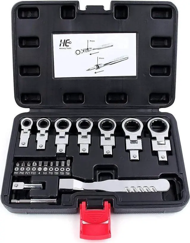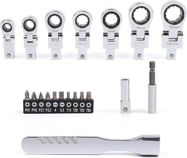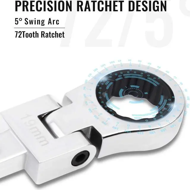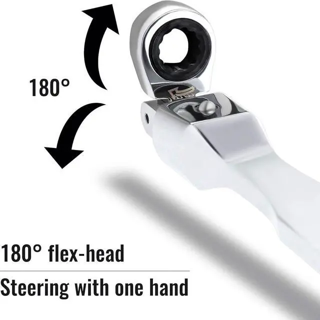 Ingenious designFlex-head ratcheting combination wrench adopting precise 72-tooth ratchet gears, Socket Sets Feature Quick Release, smoothly pivoting through 180 degrees, the heads hold any angle to slide onto fastenerswhich is easier and more labor-saving than other wrenches