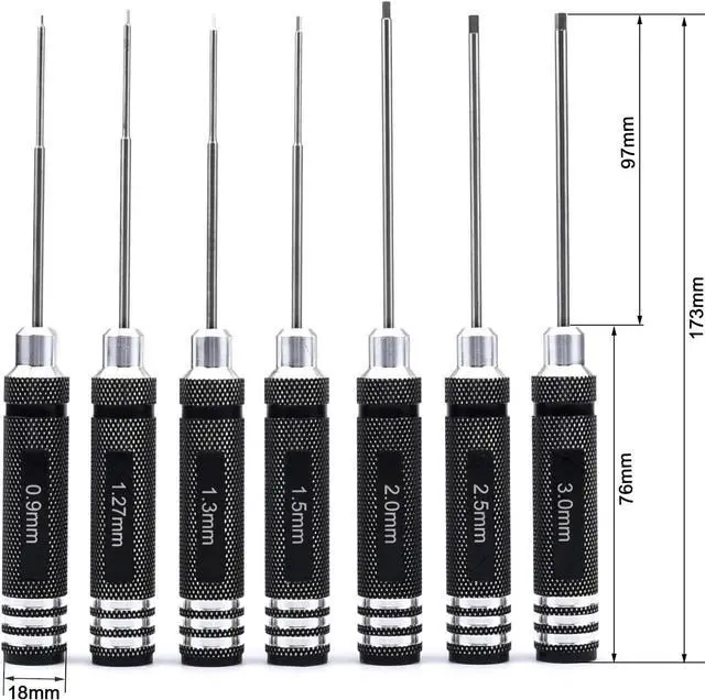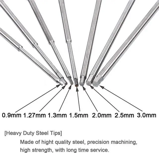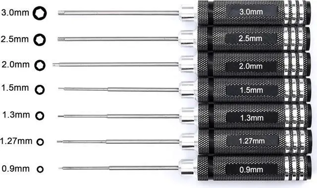 Combo Packing7 Hex Screwdrivers meets your most needs( 0.9 mm / 1.27 mm / 1.3 mm 1.5 mm / 2.0 mm / 2.5 mm / 3.0 mm )