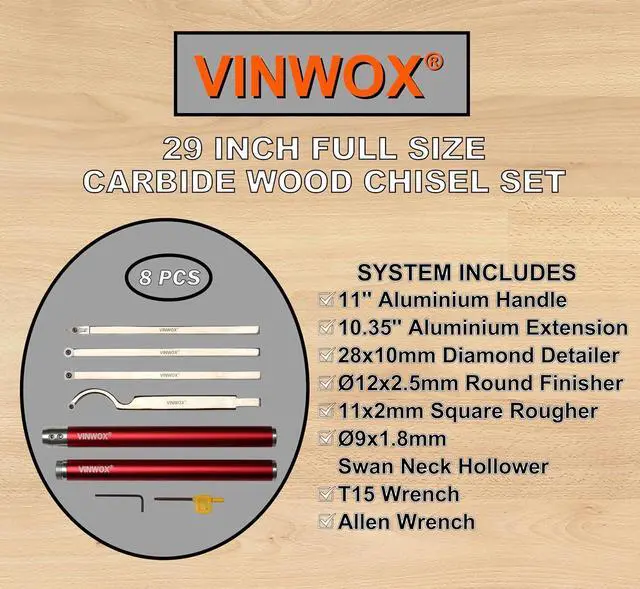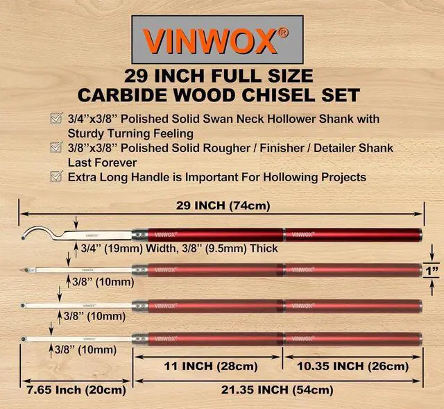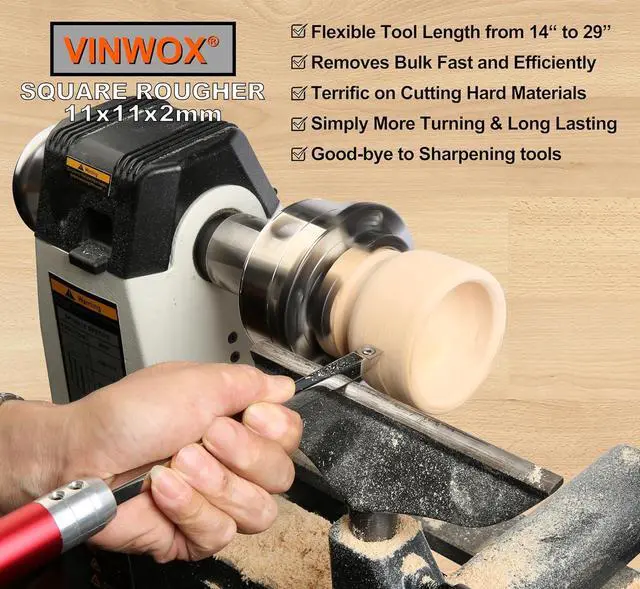 The VINWOX Carbide Turning Tools are Designed with Ease of Use in Mind. It is Ideal for Wood Turners of All Skill Levels and Helps Ensure Success Right From the Start. The VINWOX Carbide Turning Tools Eliminate the Need for Sharpening of Your Turning Tools Since It Features a Rotatable Cutter Head.