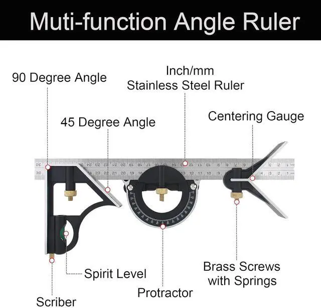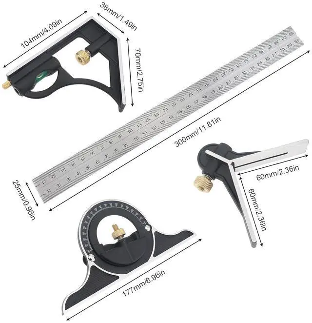 12-Inch stainless steel ruler, protractor head, center head, square heads, for all your leveling needs