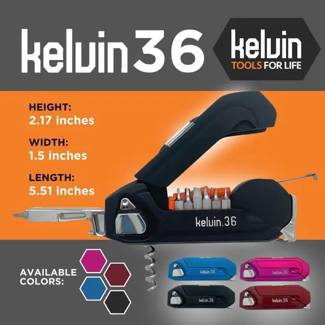 ALL-IN-ONE MULTIFUNCTIONALITY: The Kelvin 36 is the ultimate multi-tool solution for various tasks, combining 36 integrated tools in one compact device. From screwdrivers to a convenient 6ft measuring tape, this multi-tool has everything needed for daily household tasks, making it the perfect functional gift. Ideal as a father's day gift, It's also one of the top trending gifts for women, perfect as a mothers day gift or a birthday gift for women.