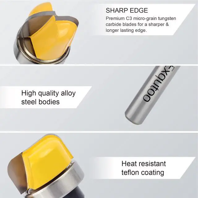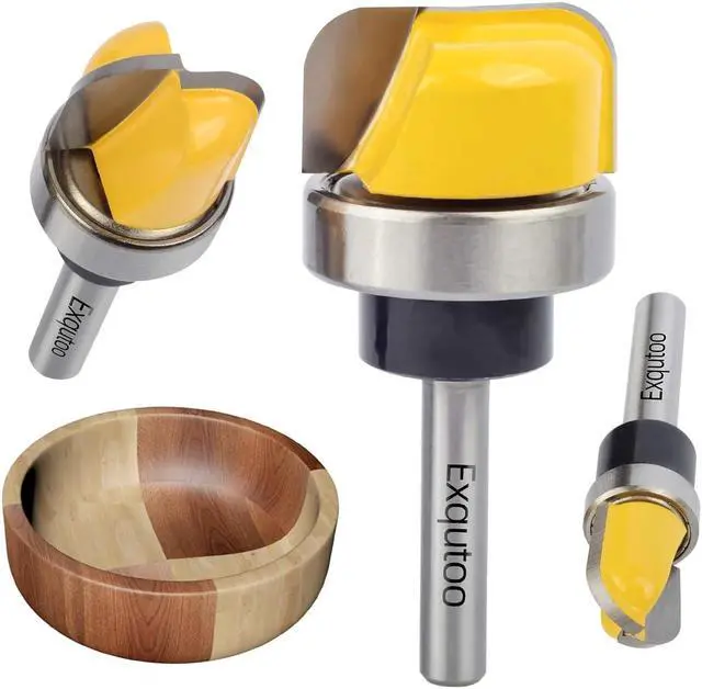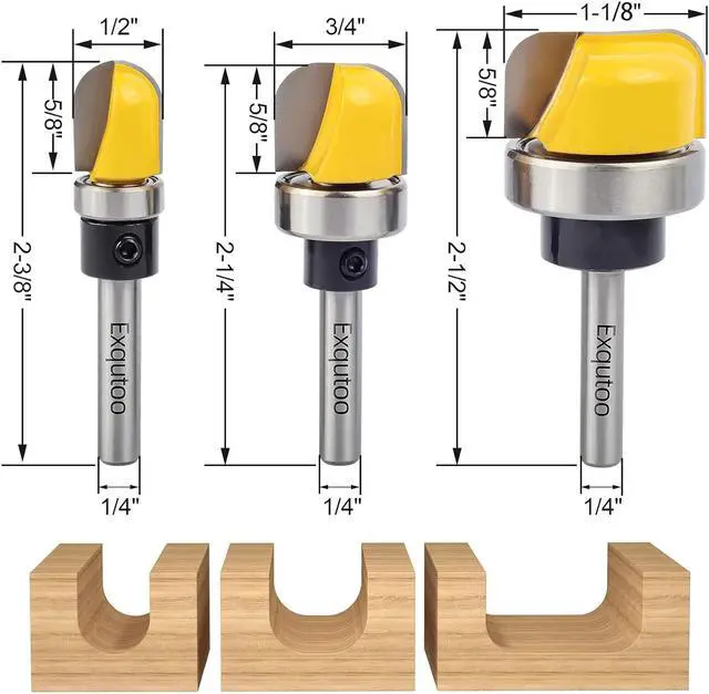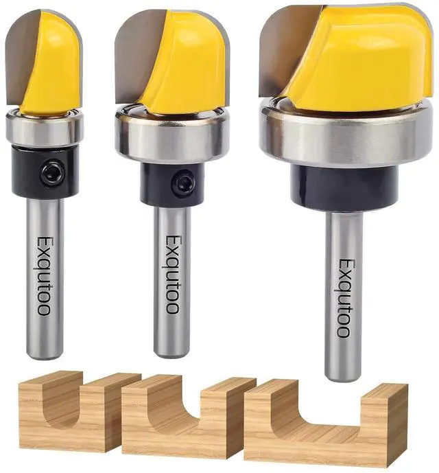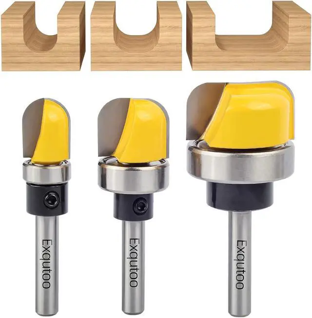 Exqutoo 3Pcs 1/4" Shank Carbide Round Nose Groove Router Bit Set Template Router planing Head Set with Ball Bearing Engraving Router planing Head Wood Cutter Woodworking Tools Carving Cutting Tool