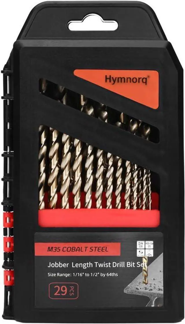 29PC FRACTIONAL INCH BITS - The set includes 29pcs of M35 cobalt steel twist bits from 1/16" to 1/2" in 1/64" increments: 1/16", 3/32", 5/64", 7/64", 1/8", 9/64", 5/32", 11/64", 3/16", 13/64", 7/32", 15/64", 1/4", 17/64", 9/32", 19/64", 5/16", 21/64", 11/32", 23/64", 3/8", 25/64", 13/32", 27/64", 7/16", 29/64", 15/32", 31/64", 1/2". Well packaged in a tough index ABS plastic case.