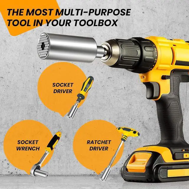 Widely Used Tools The multi-function socket wrench is equipped with an adapter, which can be easily connected with power drill, electric screwdriver and ratchet driver. In this way, socket wrench can replace your entire socket set to use in home improvement, construction, carpentry, DIY project, auto repair, electrician and other household maintenance.