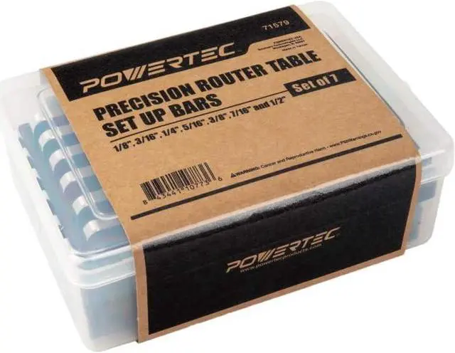 INCLUDES: 7pcs Router Table Setup Bars (1/8", 3/16", 1/4", 5/16", 3/8", 7/16" & 1/2") with a protective storage case